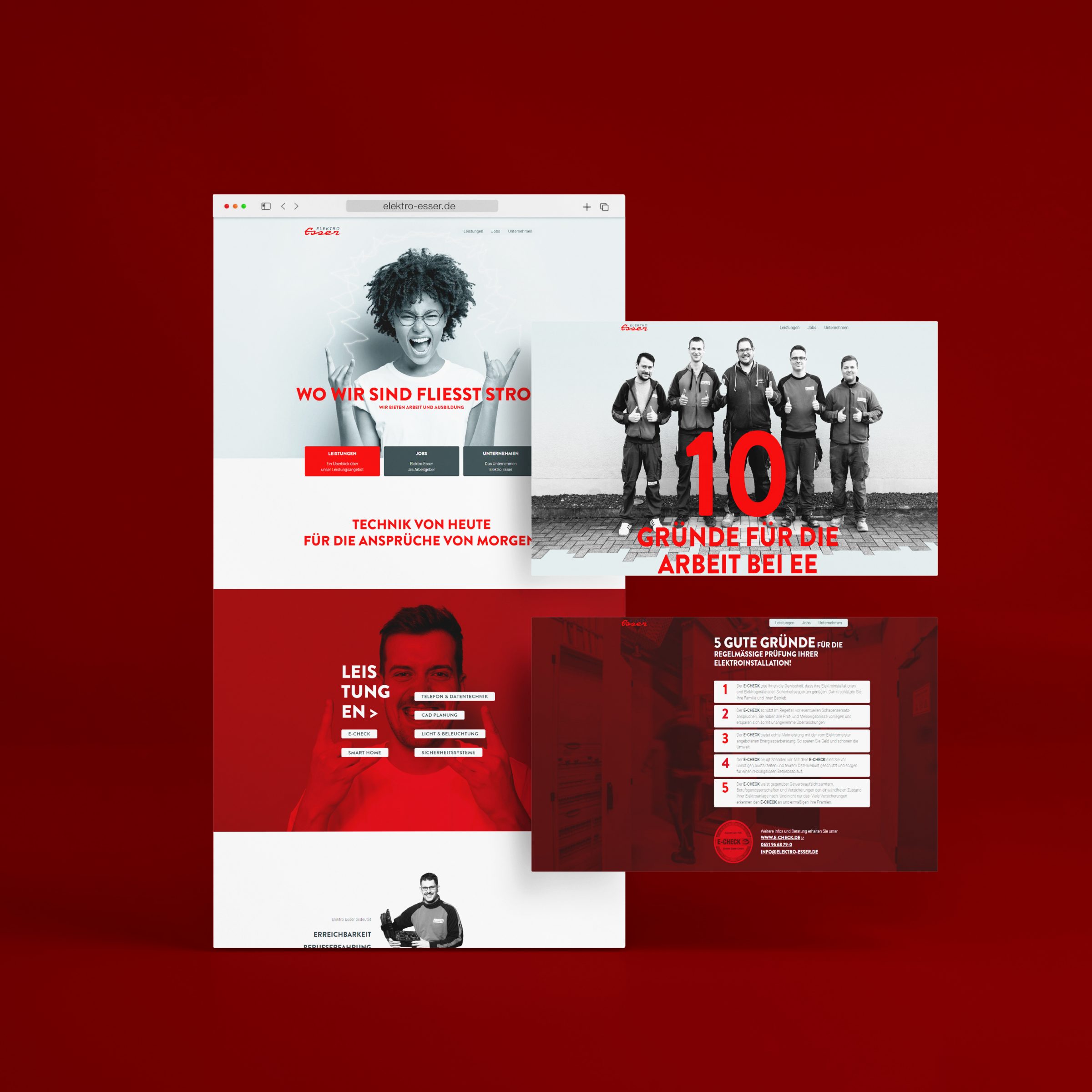 Elektrotechnik ist spannend! – Dieses Gefühl transportieren wir für unseren Kunden Elektro Esser mit seiner neuen Onlinepräsenz. Die neue Website kommt mit frischem UX-Design und einem noch besseren Überblick zu allen Leistungen. Alle Informationen sind jetzt gebündelt und strukturiert abrufbar und eine bessere Navigationsmöglichkeit erleichtert das Navigieren durch die Webseite. Die neue Farb- und Bilderwelt zusammen mit einem aufgefrischten Corporate Design setzen die Inhalte gekonnt in Szene.